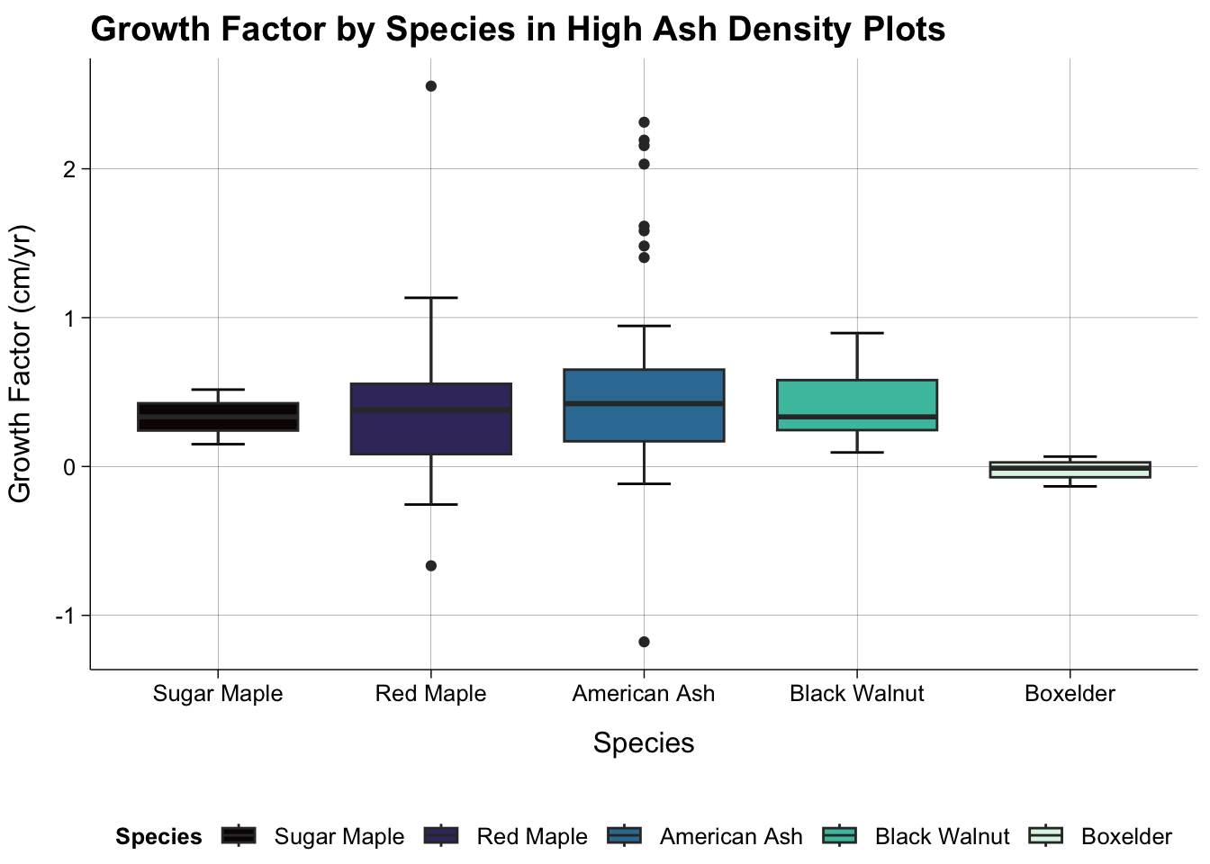 labs(title = "Growth Factor by Species in High Ash Density Plots",